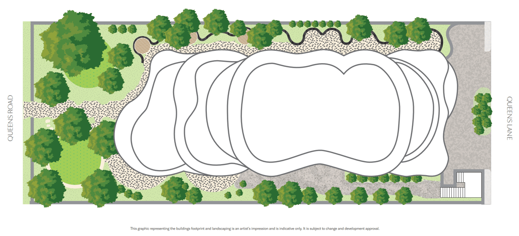The site features established neighbouring structures to the North and South, spanning three and four levels respectively, with street frontage to the West along Queens Road and to the East along Queens Lane. Its advantageous location offers immediate access to green spaces such as Albert Park, Falkner Park, and the Botanical Gardens.